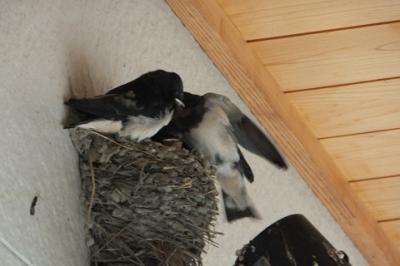 | 当院の自宅でツバメが巣を作り、先日とうとうヒナが巣立っていきました。 | | 元気に巣立っていったと思いきや、また、産卵しヒナを育てています。 | | |